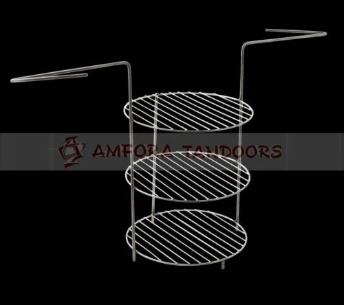 3-vrstvá mřížka z nerezové oceli / 3-patrový grilovací rošt průměru 22 cm se používá pro pečení masa, ryb, drůbeže, klobás, steaků, zeleniny, hub, mořských plodů a různých druhů pečiva. Mřížka umožňuje rovnoměrnou přípravu potravin v tandoor peci.