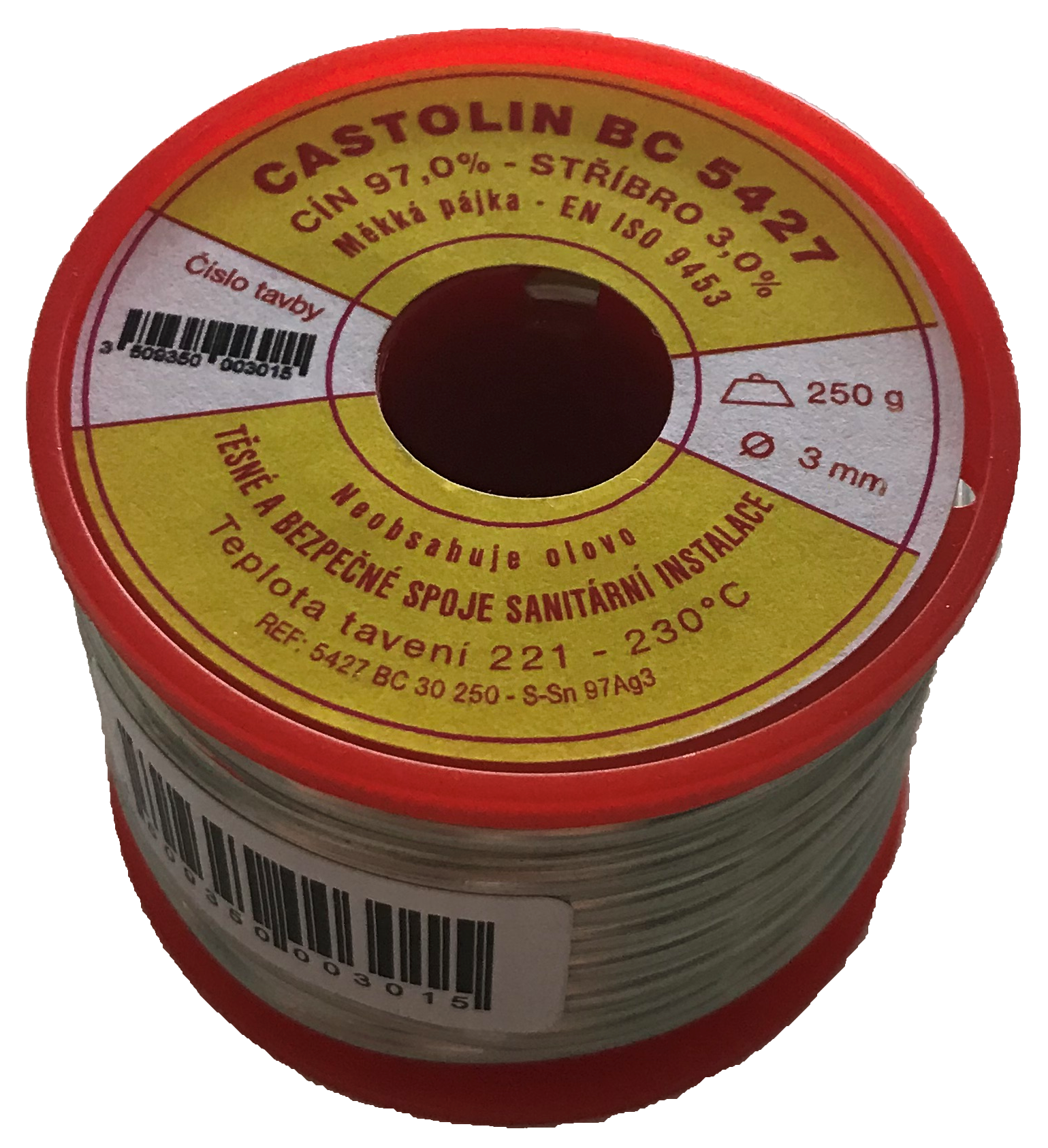 Castolin měkká pájka S-Sn 97Ag3, 3 mm, 250g BC 5427 30, 515308 cín 97% stříbro 3%
