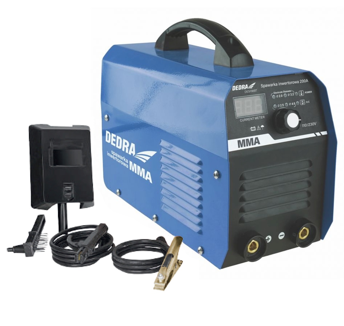 Dedra Svářečka invertorová 200 A, iGBT, MMA DESi196BT + kabely, helma