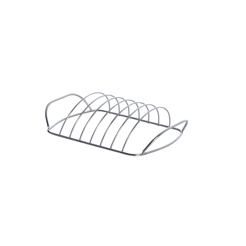 Držák / stojan na žebra vyrobený z nerezové oceli, cca 30 x 18 x 8 cm (výška).