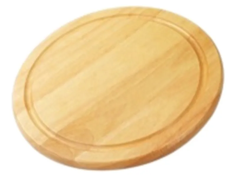 Dřevěné kulaté krájecí prkénko s odtokovou drážkou.
