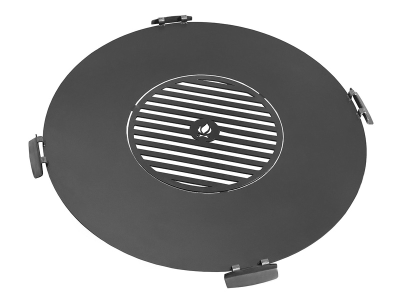 Grilovací deska kruhová s vloženým grilovacím roštem o průměru 46 cm. Ideální doplněk k ohništi o průměru 100cm. Společnost může sedět kolem ohně a zároveň si každý griluje svůj pokrm na grilovací desce nebo na roštu, který po jeho sejmutí slouží jako otvor pro přikládání dřeva, aniž by se musela sundat z ohniště grilovací deska. Výrobek je určen pro ohniště o průměru 100 cm. Deska je vsazena do ohniště – opírá se o 4 ocelová madla výrobku. Snadné zacházení, ideální pro letní večery strávené na zahradách. Robustní a pevný výrobek. Vyrobeno v EU.