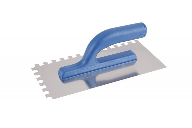 - Hladítko nerezové zubové FESTA 280x130 mm, zub e10, s plastovou ručkou, tl.plechu 0,8 mm.