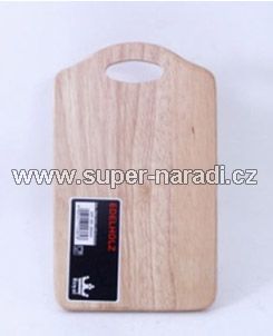 Krájecí deska z kvalitního dřeva gumovníku, opatřena madlem, bez okrajové drážky.