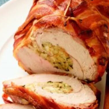 Nadívané krůtí prsní řízky ve slaninovém kabátku jsou rychlá a chutná obdoba klasické úpravy krocana s nádivkou.