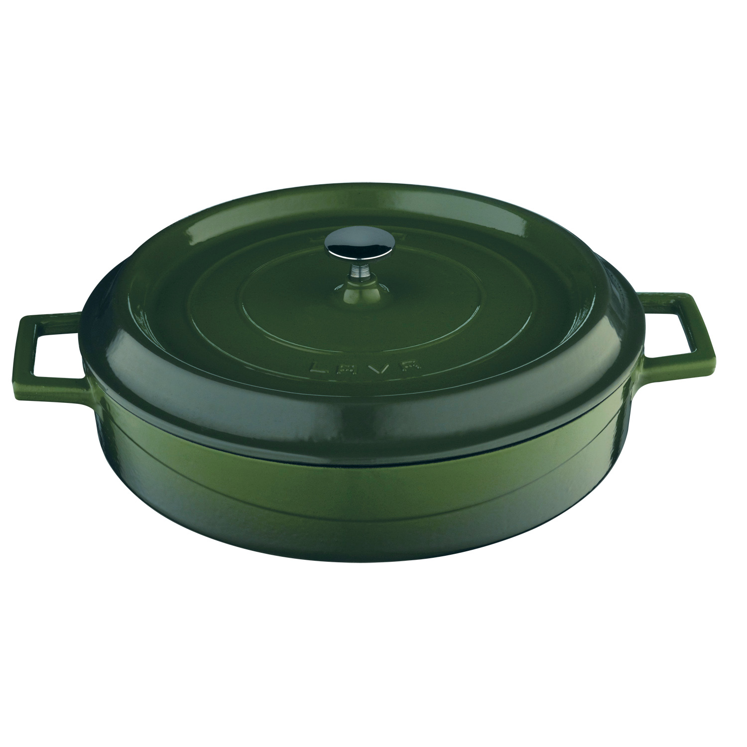 Nízký litinový hrnec zelené barvy Lava metal je nadčasový pomocník do Vaší kuchyně. Zvládne vše - dušení, pečení, jídla z jednoho hrnce. Vaření v litinovém nádobí je velice jednoduché. Hrnec vytváří spojení mezi sporákem a Vaším stolem, takže z něj můžete stylově servírovat. Vaše jídlo si zachová svou teplotu a hrnec bude na stole vypadat krásně. Malé hroty pod poklicí zaručují plynulou cirkulaci, vytvářející ideální podmínky pro pomalé vaření, perfektní pro dušení, opékání, pečení a smažení. Litinové nádobí Lava si oblíbíte pro jeho schopnost držet teplo, jednoduché vaření a praktickou nerozbitnost. Tento kastrol Vám nabízí průměr 28 cm, výšku 7 cm a objem 3,5 l.