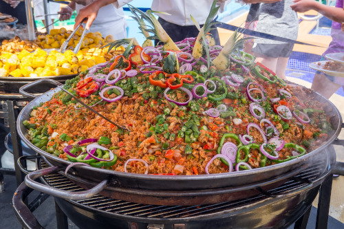 Velká paella pánev je skvělá na přípravu pokrmů na poutích, koncertech, food-festivalech, sportovních akcích, vánočních trzích. Výhodou větších Paella pánvi je jejich plošná kapacita. Vařené speciality jsou krásně vidět a lákají hladové návštěvníky. Příprava pochoutek na otevřené Paella pánvi je atraktivní pro oči a společně s vůní připravovaných surovin vytváří jedinečný mix touhy po dobrém jídle.