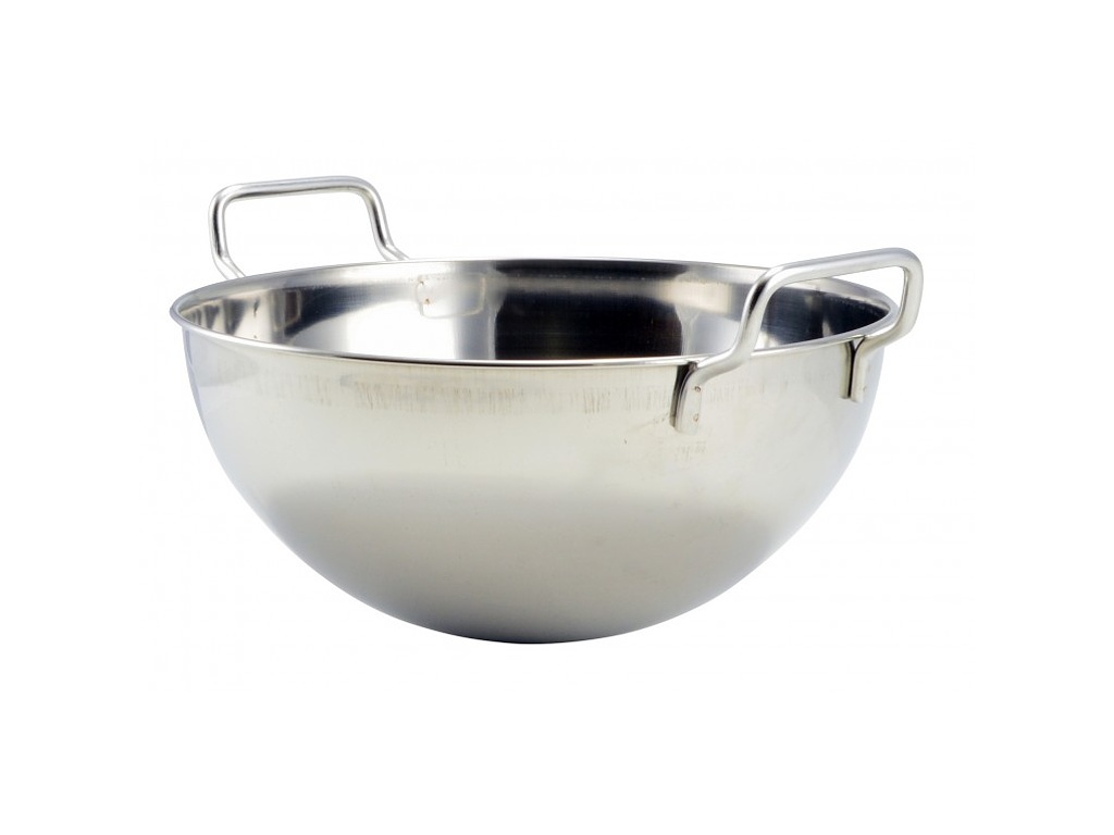 WOK pánev z nerezové oceli je vybavena dvěma madly, má kulaté dno a lisovaný vnější límec. Pánev je vhodná pro hobby wokování na plynovém vařiči nebo přímém ohni.
