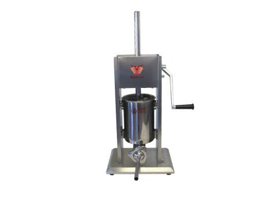 Vertikální celo-nerezová plnička, narážka klobás a jitrnic s DUO převodem. S výklopným a zároveň odnimatelným rezervoárem.