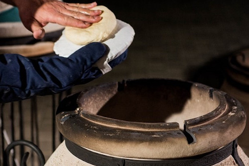 Sada na výrobu chlebů nebo tortill v keramické peci tandoor.