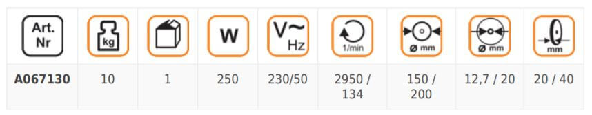 - Kotouč suchý: 150 x 20 x 12,7 mm