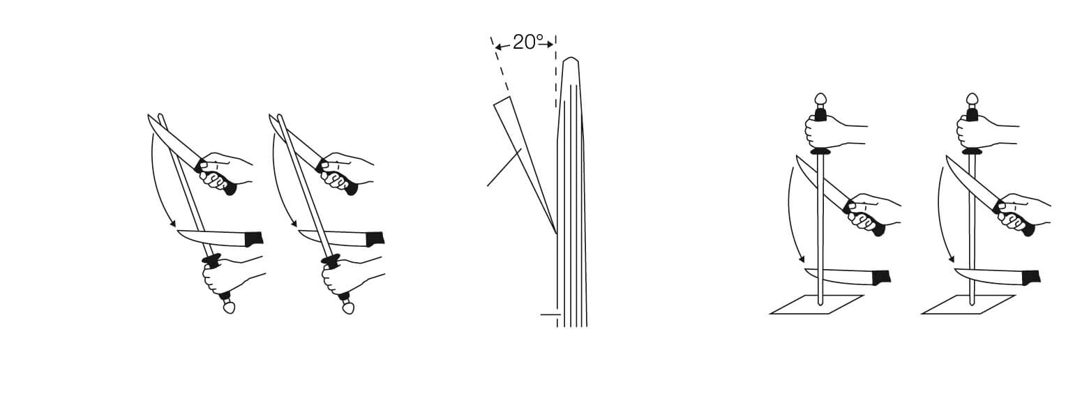 Pro běžné udržení ostří Vašeho nože v odpovídající kvalitě použijte ocílku Wüsthof Dreizack. Ocílka slouží k oživení ostří nože a uhlazení ostří po použití brousku. Vezměte ocílku do jedné ruky a nůž do druhé ruky. Jednoduše přidržte zadní konec ostří v úhlu 20 stupňů k ocílce a lehkým tlakem táhněte nůž dolů přes celou délku ostří do špičky - nejdříve na jedné a poté i na druhé straně ocílky. Po 6-8 opakováních budou mít Vaše nože zase původní ostří. Ocílka by měla být delší než broušený nůž.