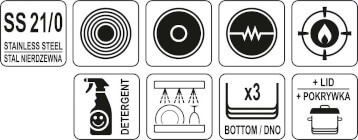 Boky hrnce a poklice jsou vyrobeny z hrubší oceli, která udržuje teplotu déle než u standartních hrnců z oceli 304. Hrnce YATO používají mimořádně pevné a neohřívací, pevně upevněné rukojeti. To zaručuje bezpečnost a mnoho let používání.