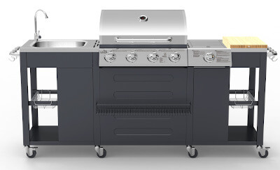 Hlavní grilovací prostor je osazen s 4x hořáky s samostatnou regulací a piezo zapalováním. Díky možnosti vypnout prostřední hořáky je gril vhodný jak pro přímé, tak pro nepřímé grilování, je vybaven teploměrem a odkládacím roštem pro udržování teplot již hotových pokrmů. Celá zahradní kuchyně je doplněna vařičem se samostatnou regulací a piezo zapalováním. Součástí je i spojovací hadice k plynové lahvi a redukční ventil.