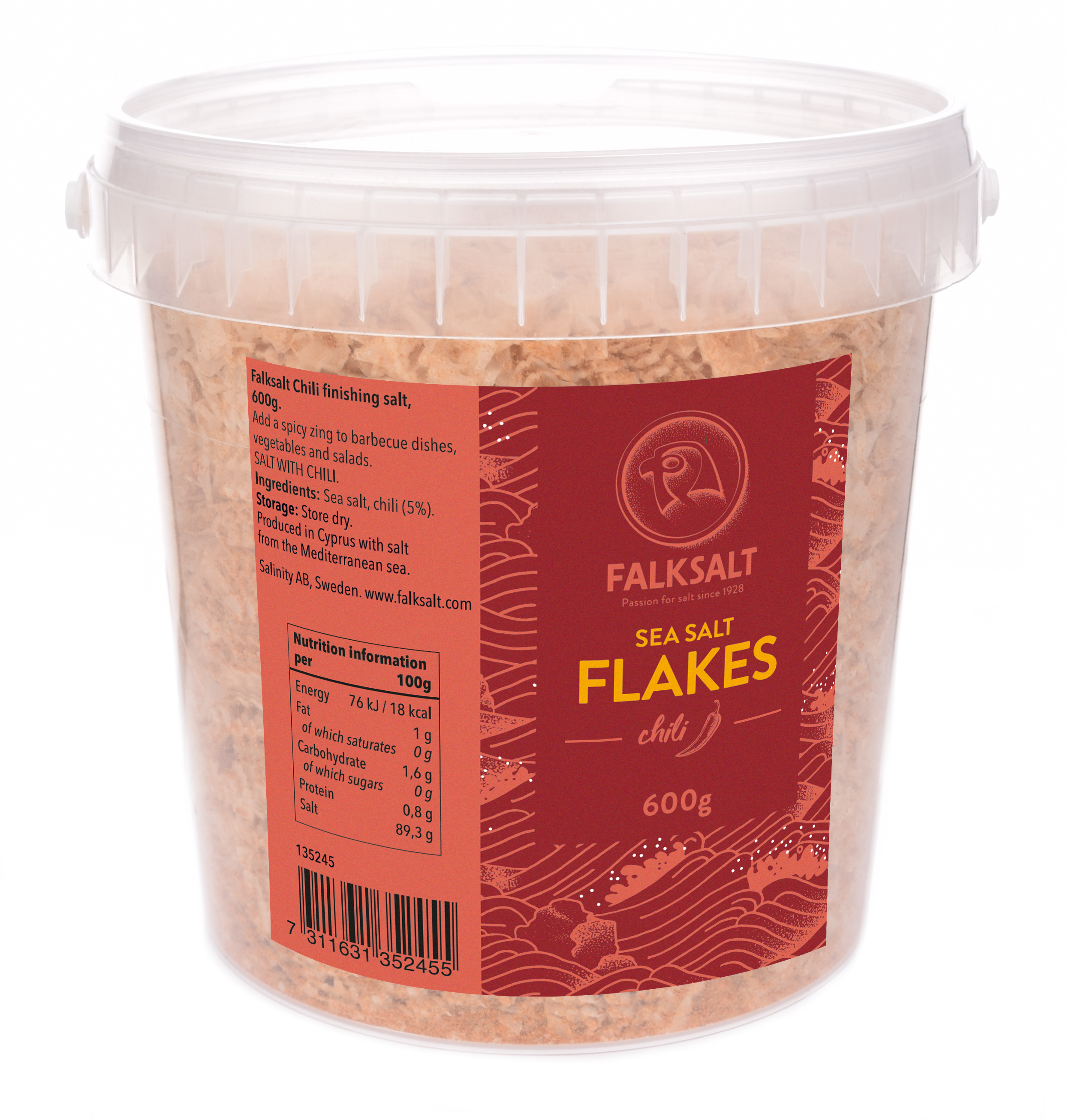 - Kvalitní Mořská Sůl: Falksalt Chilli Mořská Sůl je vyrobena z nejkvalitnější mořské soli, která je bohatá na stopové minerály a přináší do vašich jídel zdravou dávku minerálů.