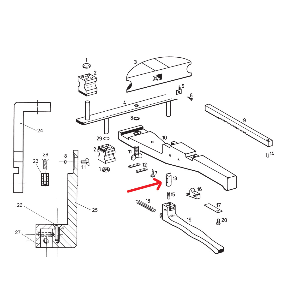 Kolík zarážky je součástí ruční ohýbačky REMS Swing