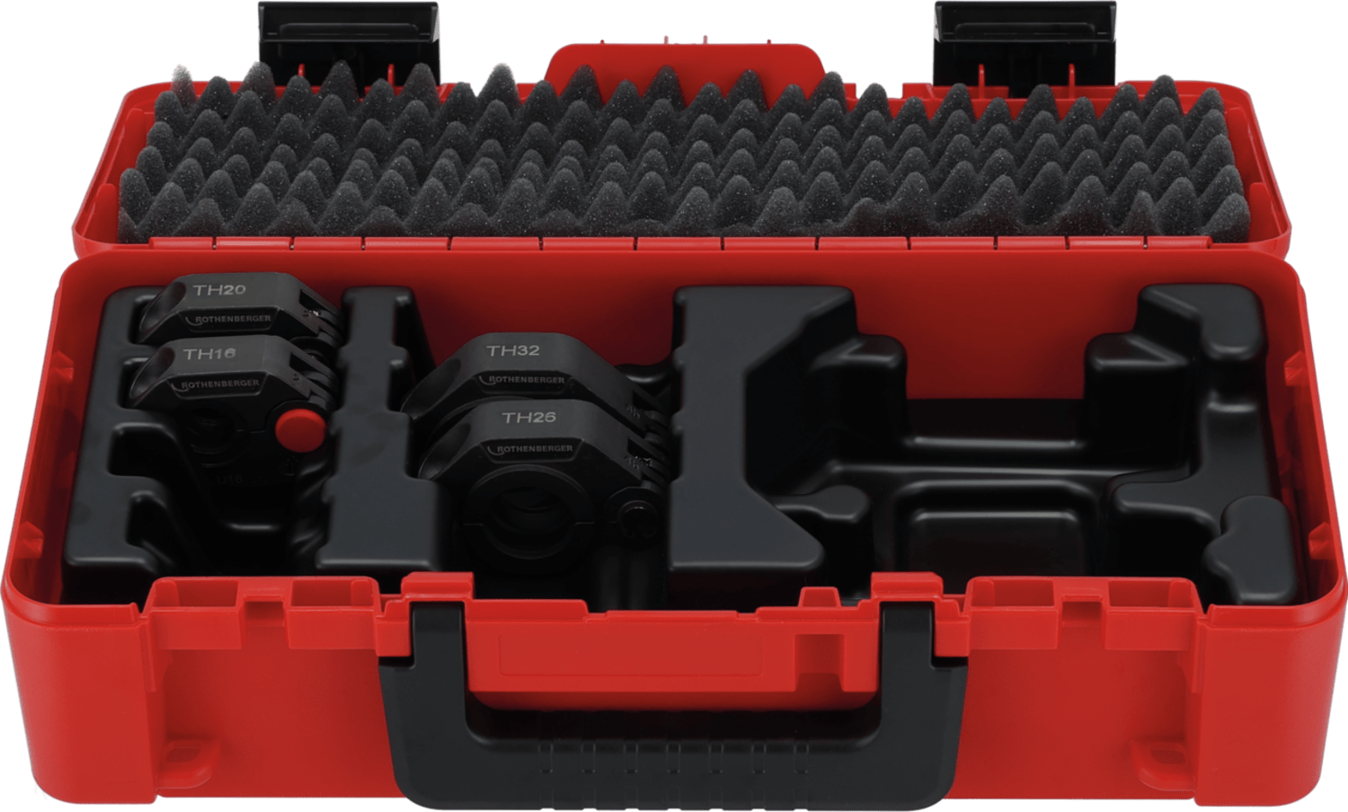 Vysoce kvalitní konturový lisovací kroužek TH byl speciálně navržen a vyvinut společností ROTHENBERGER pro lisovací aplikace na plastových potrubních systémech (MSR). S těmito konstrukcemi lisovacích kroužků jsou uživatelé ideálně vybaveni pro lisování tvarovek ve složitých montážních situacích způsobem vyhovujícím systému. Díky technologii ROTHENBERGER DURA LAZR TEC -® inovativnímu procesu částečného laserového kalení - je možné přesné a bezpečné krimpování se zvýšenou životností současně. To má za následek také minimální opotřebení a zdvojnásobení lisovacích cyklů ve srovnání s neošetřenými lisovacími nástroji. Dlouhodobá ochrana proti korozi navíc podporuje odolnost lisovacích kroužků/čelistí. Díky použití speciální oceli pro vysoké zatížení jsou lisovací kroužky ROTHENBERGER vhodné pro všechny komerčně dostupné lisy s konstantní axiální přítlačnou silou 19 kN nebo 32 kN. Sada obsahuje lisovací kroužky pro kontury TH16, TH20, TH 26 a TH32.
